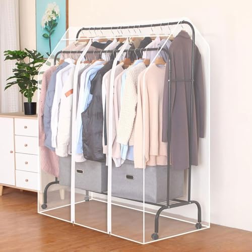 Tmendy Double Hanging Rods Clothes Rail Widen Dust Cover, Portable Closet with Cover, Garment Rack Cover Clothes Protector with Zipper for Bedroom Shop Office A,130cm