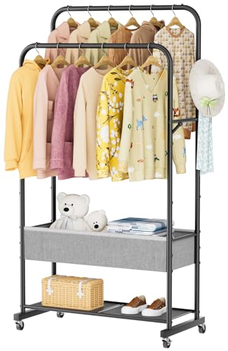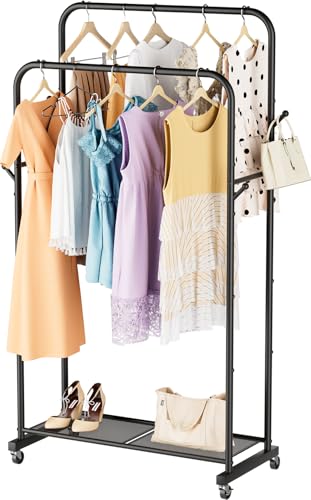 Portable Double Rail Clothes Garment Hanging Rack Heavy Entryway Hall Shelf Unit