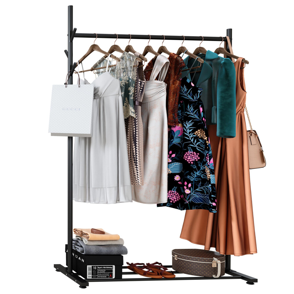 Klass Home Collection Portable Heavy Duty Clothes Rail For Bedroom, Home & Shops, 50KG Load Clothes Rack With Storage Shelf, Metal Clothing Rail For Hanging Garments, Coats (Black With Feet)