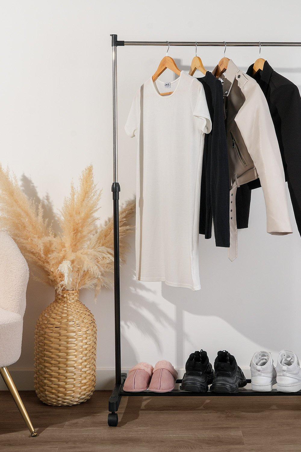 Clothes and Shoe Rack - Storage Organiser, Adjustable Closet Stand, Entryway Coat Rack with Hooks, Space Saving Clothes and Shoe Rack, Portable Clothes Rail