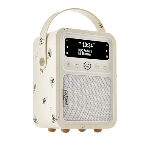 Cath Kidston Portable DAB Radio Alarm Clock - VQ Monty Digital FM Radio with Bluetooth - Rechargeable Radio with Bluetooth Speaker - Dual Alarm DAB+ Radio Bedside with 60 Presets - Bees