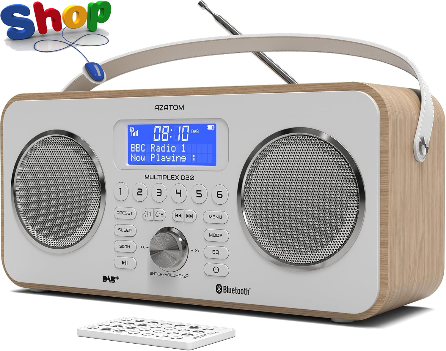 DAB/DAB+ & FM Portable Digital Radio | Bluetooth | Remote Control | Rechargeable Battery | Dual Alarms & Sleep Timer | Perfect for Home, Office or Outdoors | AZATOM Blackfriars 2 (OAK)