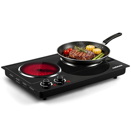 Electric Hob, CUSIMAX Double Hot Plate for Cooking, Electric Ceramic Hot Plate, Portable Double Infrared Cooktop with Dual Temperature Control, 2400W Countertop Cooktop, Heat-Up in Seconds, Black