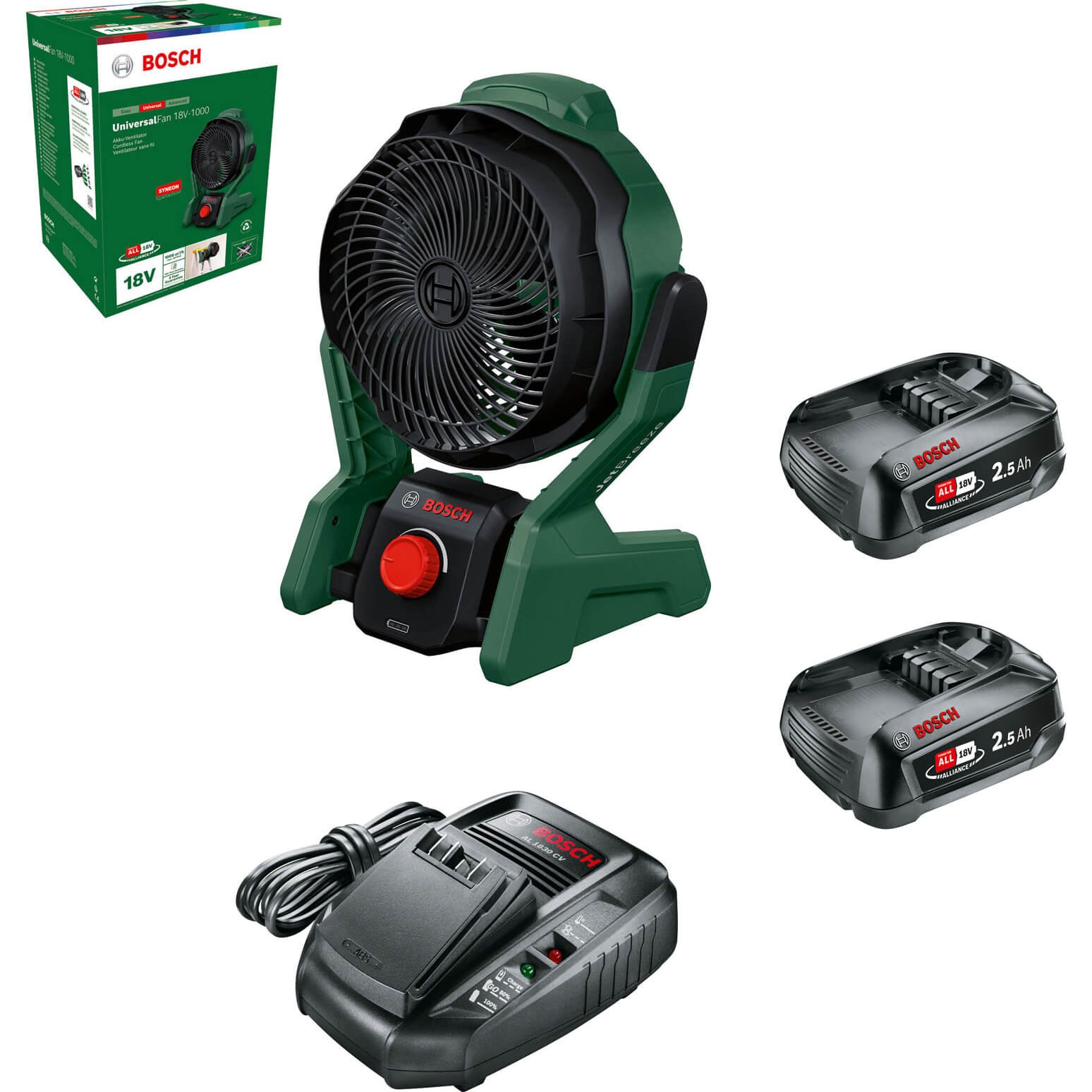Bosch UNIVERSALFAN 18V-1000 P4A 18v Cordless Portable Fan 2 x 2.5ah Li-ion Battery Charger No Case