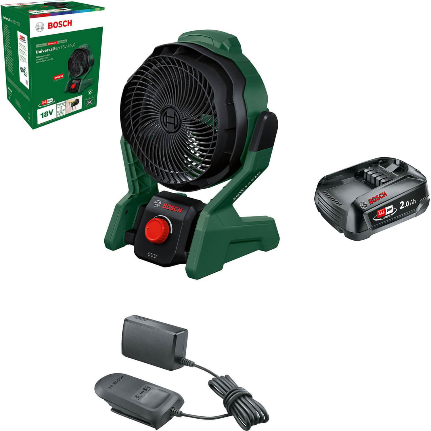 Bosch UNIVERSALFAN 18V-1000 P4A 18v Cordless Portable Fan 1 x 2ah Li-ion Battery Charger No Case