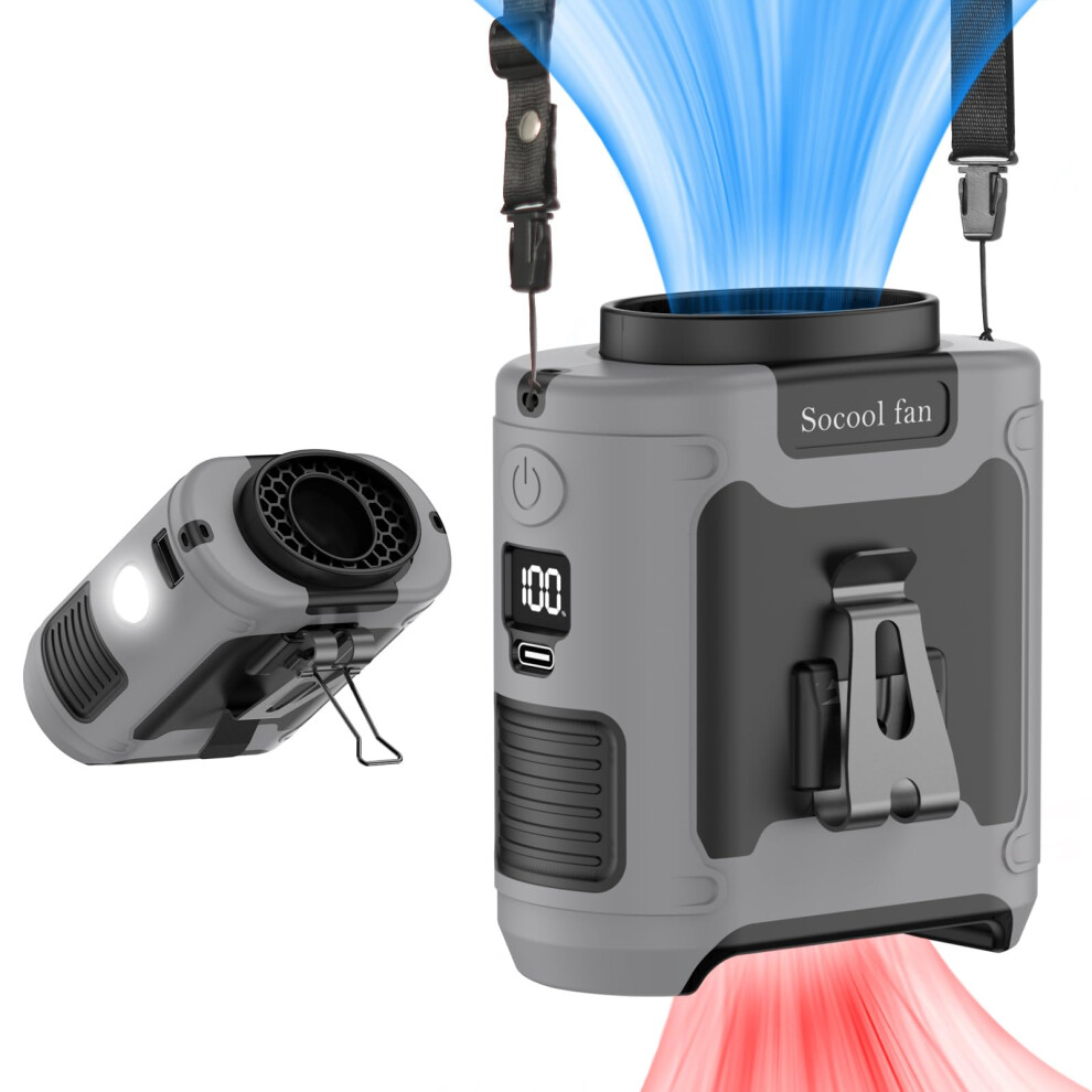 Socool 10000mAh Portable Waist Fan Clip on Wearable Belt Personal Fan Rechargeable Battery Operated with 5 Speeds & Flashlight Neck Hands-Free 40H