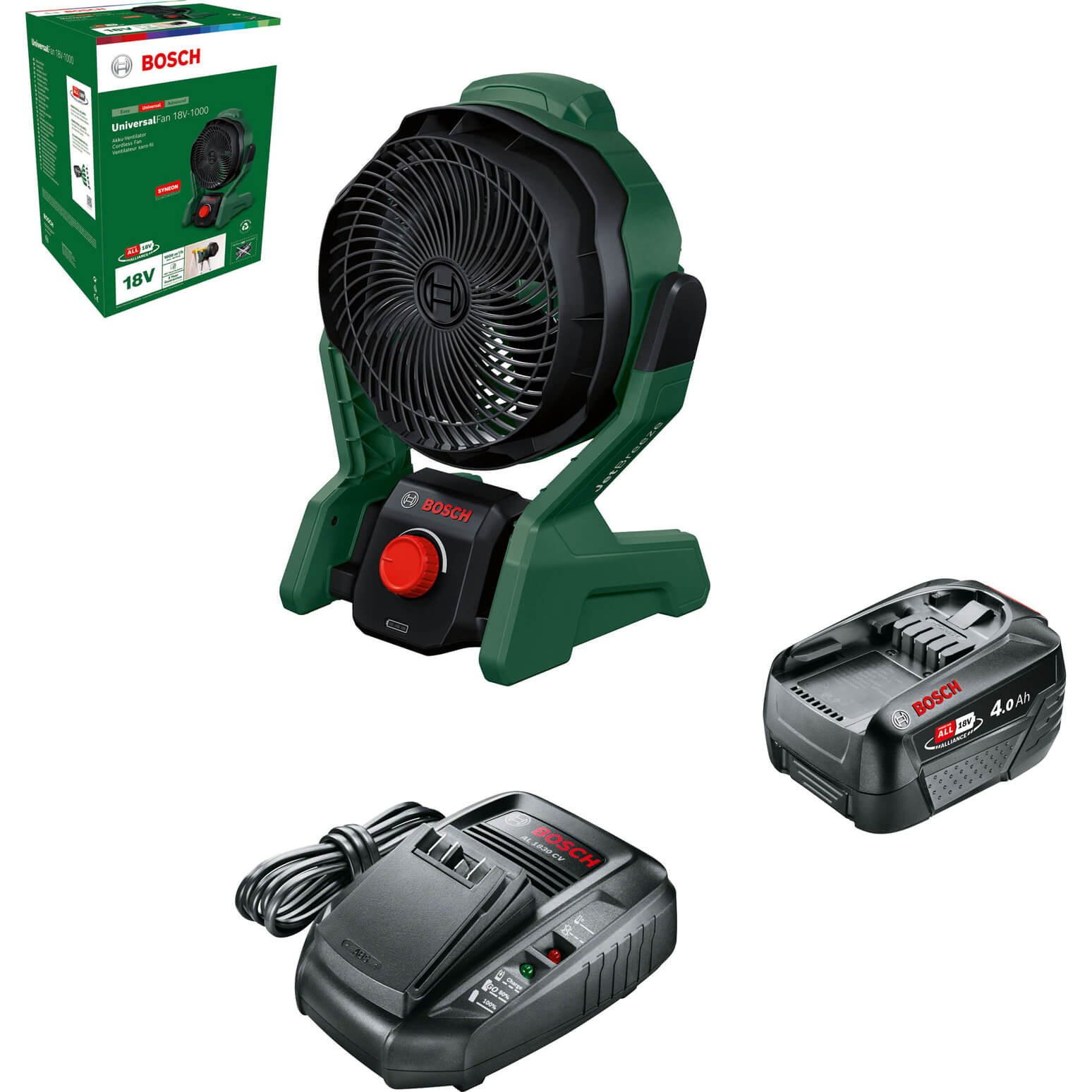 Bosch UNIVERSALFAN 18V-1000 P4A 18v Cordless Portable Fan 1 x 4ah Li-ion Battery Charger No Case