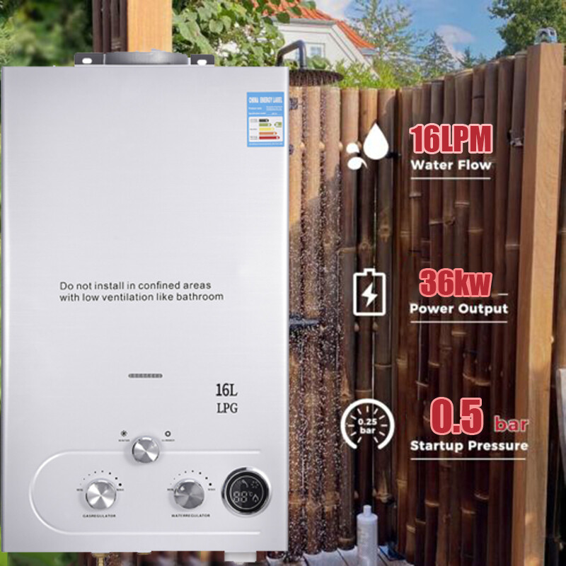 16L Portable Gas Water Heater Shower Outdoor Camping Hot Tankless LPG System