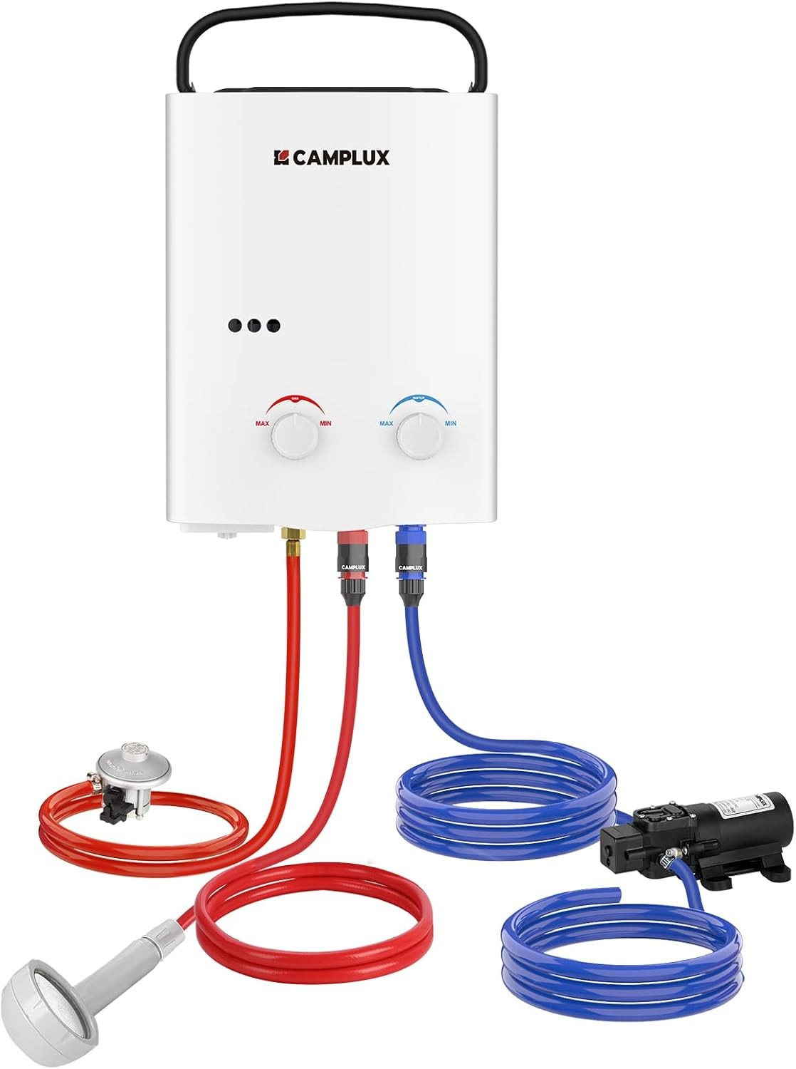 CAMPLUX Portable Gas Water Heater with Pump, Nano 3 Pro Gas Shower 3 L/min, Instant LPG Hot Water Heater for Outdoor Shower, Camping, Hiking