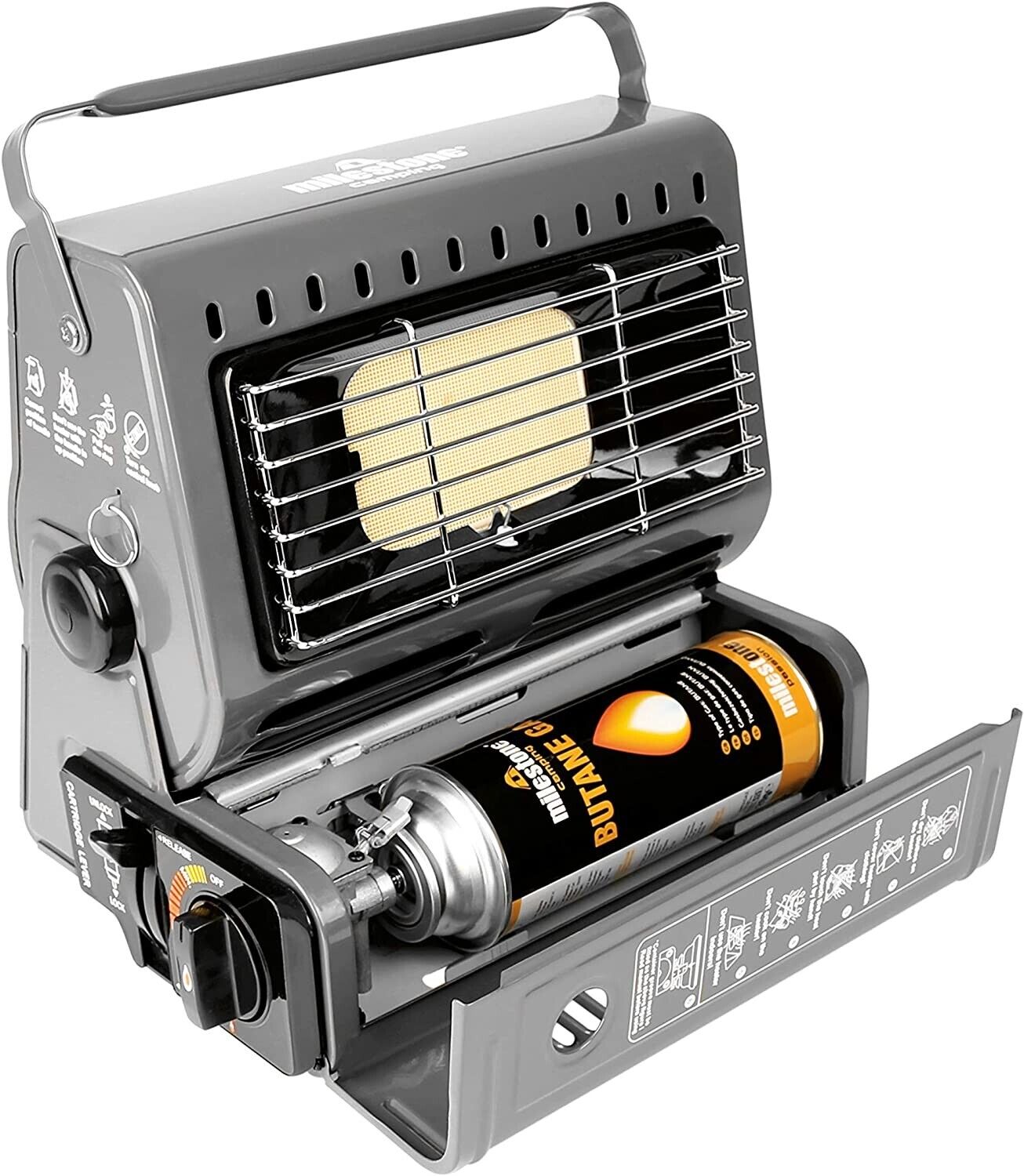 Taylor & Brown 2in1 Portable Gas Heater & Stove + 4 Butane Gas Bottles Canisters - For Outdoor, Camping, Fishing & Caravan - Emergency, Safety Grill, Auto Ignition, Carry Handle & Temp Control