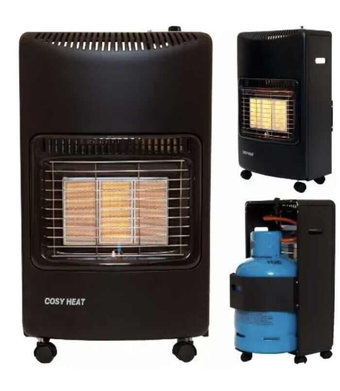 NEW CALOR GAS PORTABLE CABINET HEATER FIRE BUTANE WITH REGULATOR & HOSE - BLACK