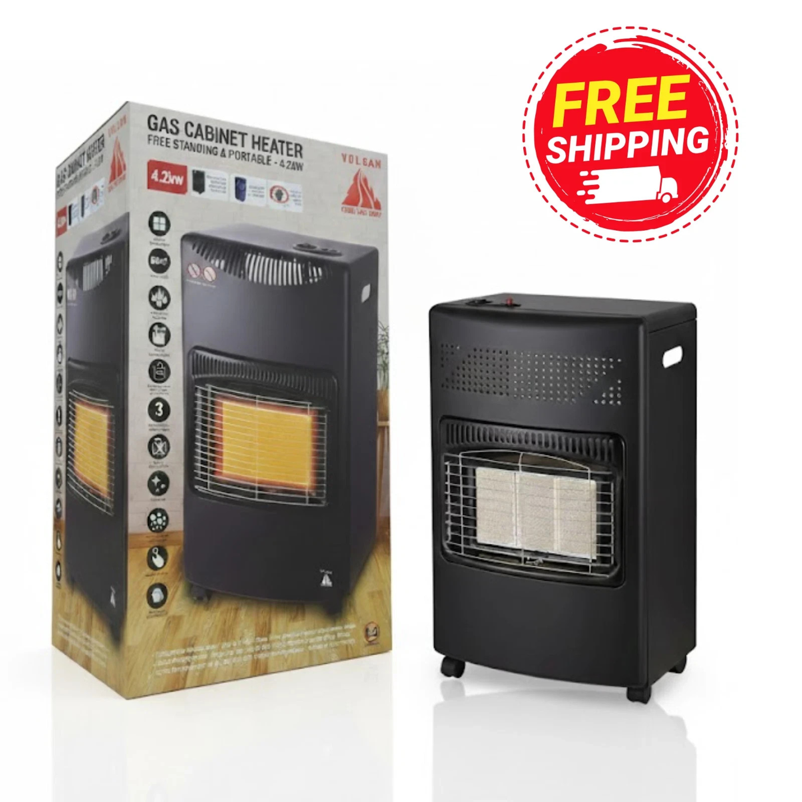 Volcan 4.2kW Portable Calor Gas Cabinet Heater Fire with Regulator & Hose