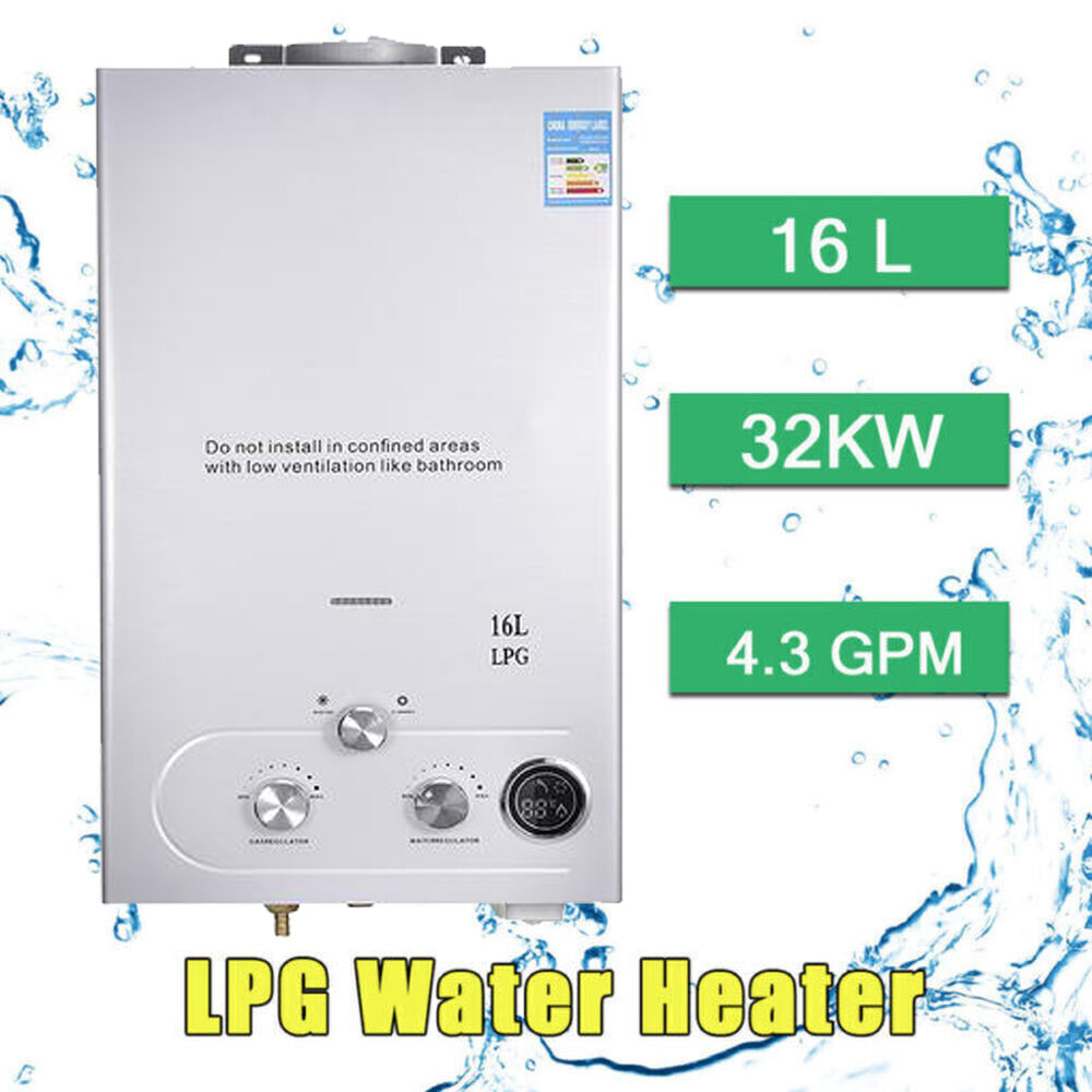16L Portable Gas Hot Water Heater LPG Shower Camping Outdoor Instant Heating UK