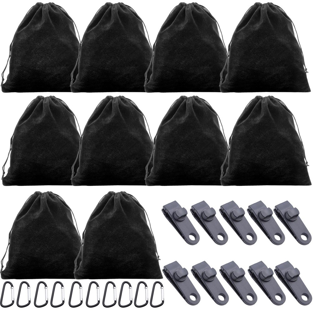 Portable Outdoor Gazebo Curtains Weight Bag with 10 Weight Pockets,10 Carabiners,10 Clips,for Gazebo Garden Beach Tent