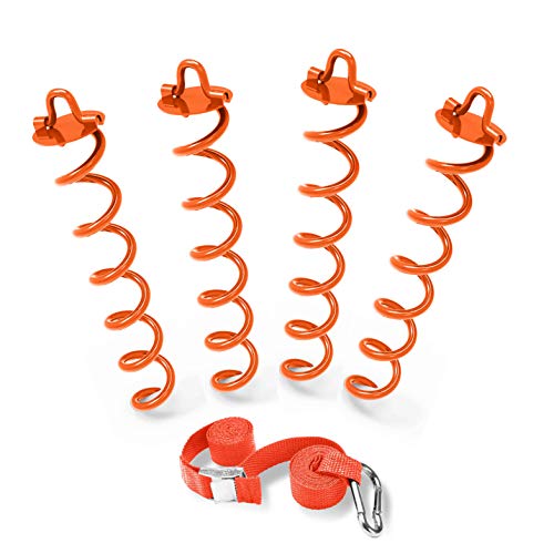 ABCCANOPY Spiral Ground Anchor with Dog Tie Out, Trampoline Anchor Stakes for Anchor Swings Set Down, Portable Basketball Goal,Gazebo,Tent, Bonus tie-Downs for Tethering The Dog, 4Pcs
