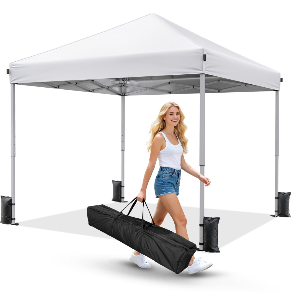 Driftalia Pop Up Gazebo 3m x 3m - Instant Setup Portable Gazebo with Carry bag, 4 Sandbags and 8 Stakes for Outdoor Events, Parties & Camping - White