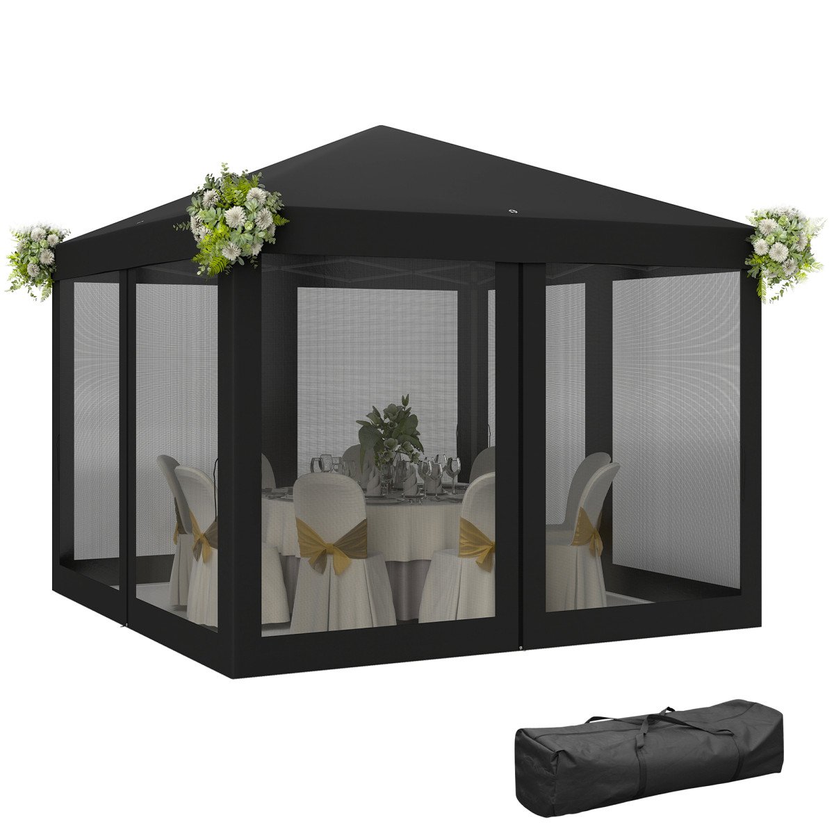 Canopy Tent 295x295cm Black 260cm High Portable Pop-Up Gazebo with Mesh Curtains