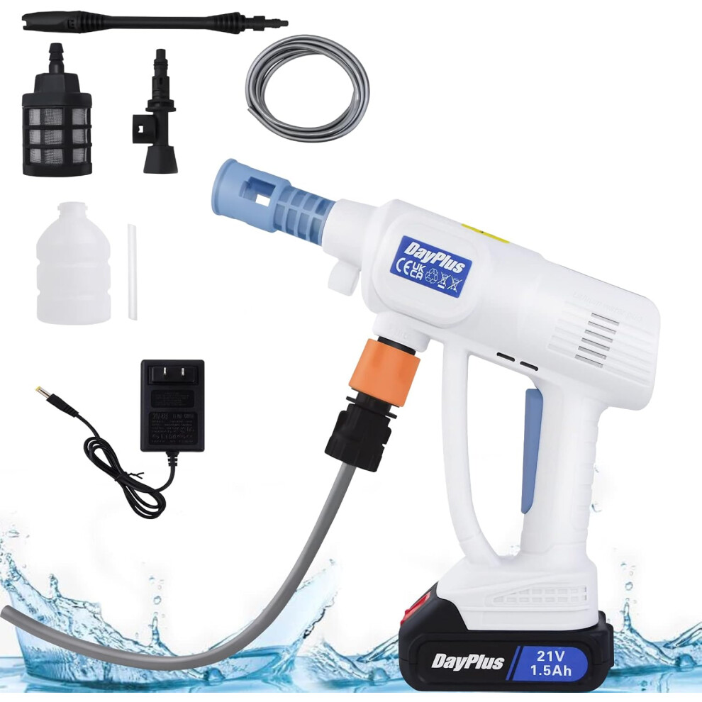 21V Electric Portable Power Cleaner with Rod and Battery and Charger, Extension Rod, for Outdoor Car, RV, Floor, BBQ Grill Cleaning, White