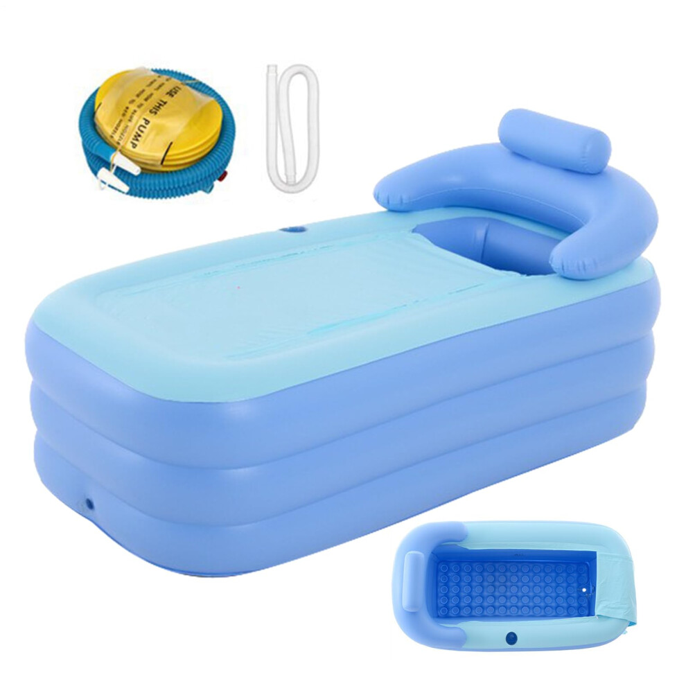 Portable Folding Bathtub for Adults and Children, Large Soaking Tub for Hot or Ice Bath, Blue 113x64x55cm