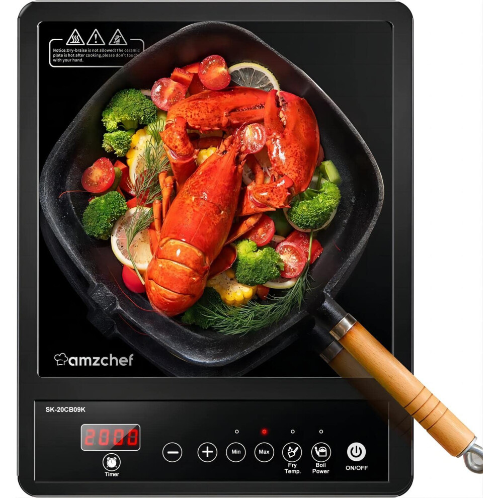 AMZCHEF Single Induction Hob, Portable Induction Hob, 10 Temperature Settings and Power levels from 300W to 2000W, 3-hour Timer