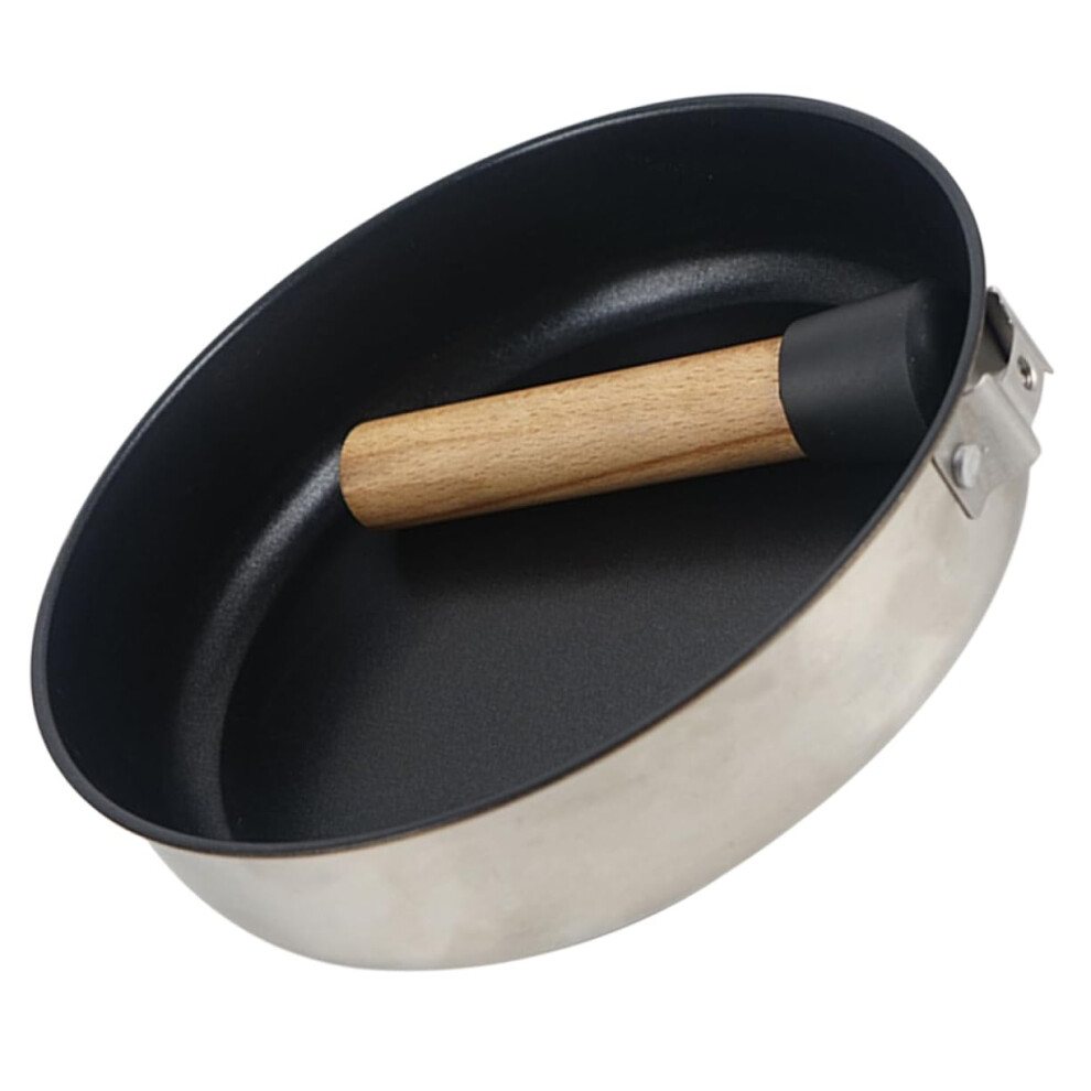 Camping Pan NonStick Coating Stainless Steel Portable Egg Pan Induction Hob Compatible Handheld Frying Pan