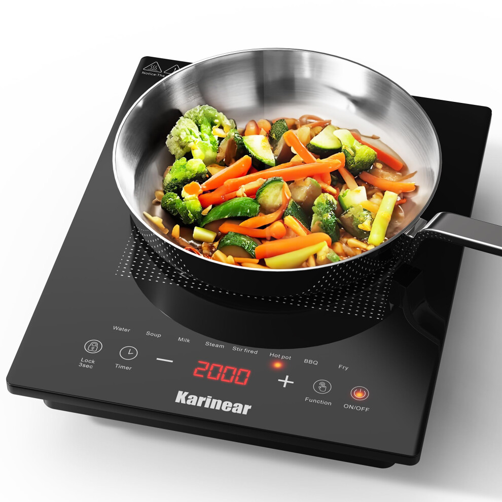 Karinear Portable Single Induction Hob, Upgrade with Safe Lock, 4H Timer, 8 functions, 9 power level, 2000W