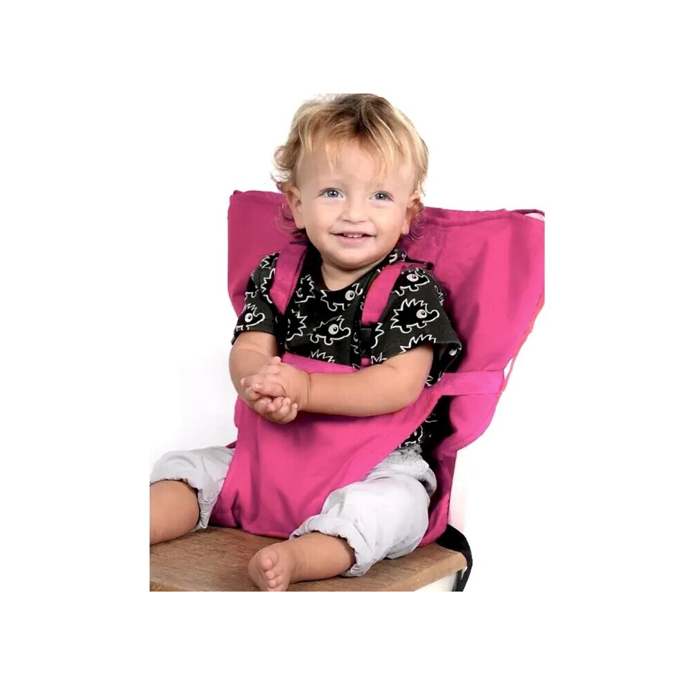 Portable Infant Dining Chair, Foldable Pink, Safety Belt, Lightweight