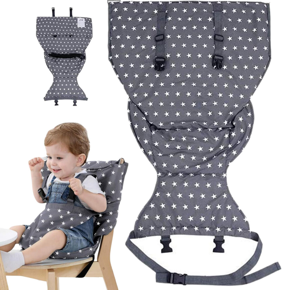 Portable Chair Cloth Travel Seat Cover With Adjustable Straps Safety Harness Accessory For Infant Feeding Grey