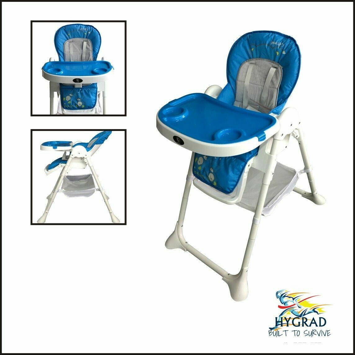 Portable 3 In 1 Baby Toddler Infant Reclining High Chair Feeding Tray Table Blue