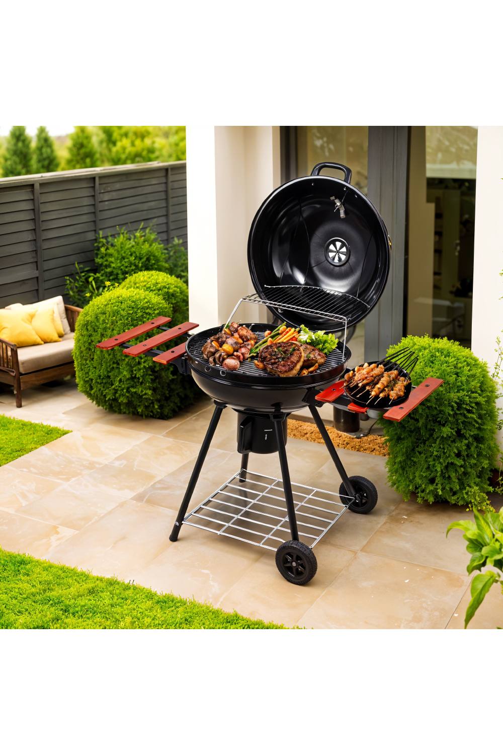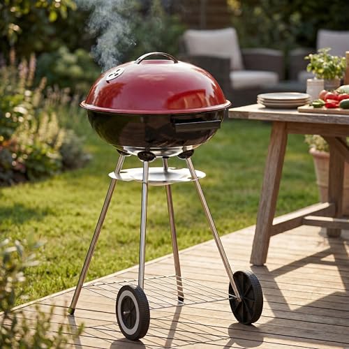 Schallen Outdoor Portable Charcoal Trolley Kettle BBQ Cooking Grill