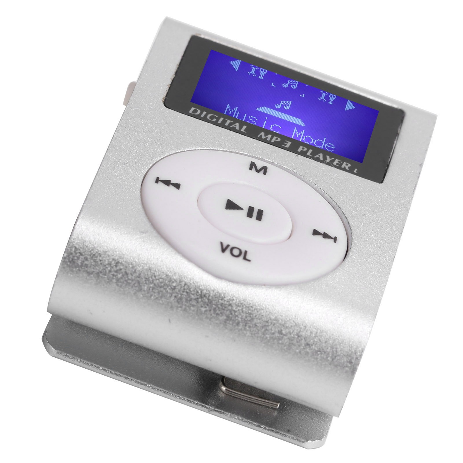 (Silver)Portable Mini MP3 Music Player Sports BackClip LCD Screen MP3 Suppo TU