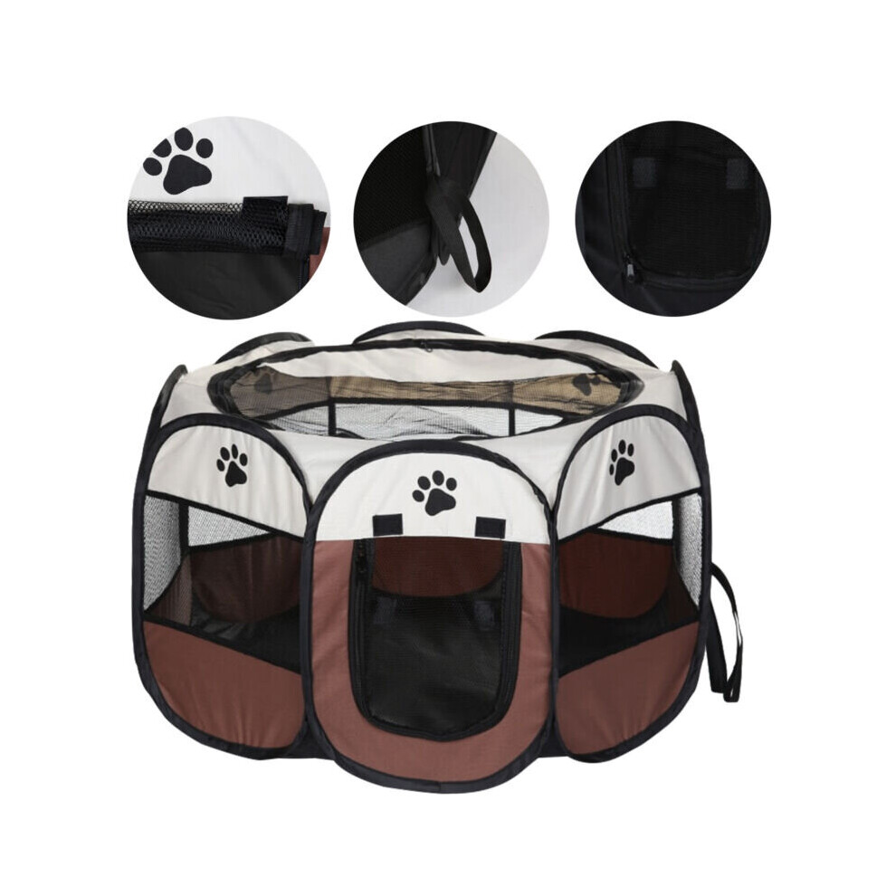 (Brown) Portable Pet Playpen Pop Up Dog Tent Cat Fence,91*91*58cm