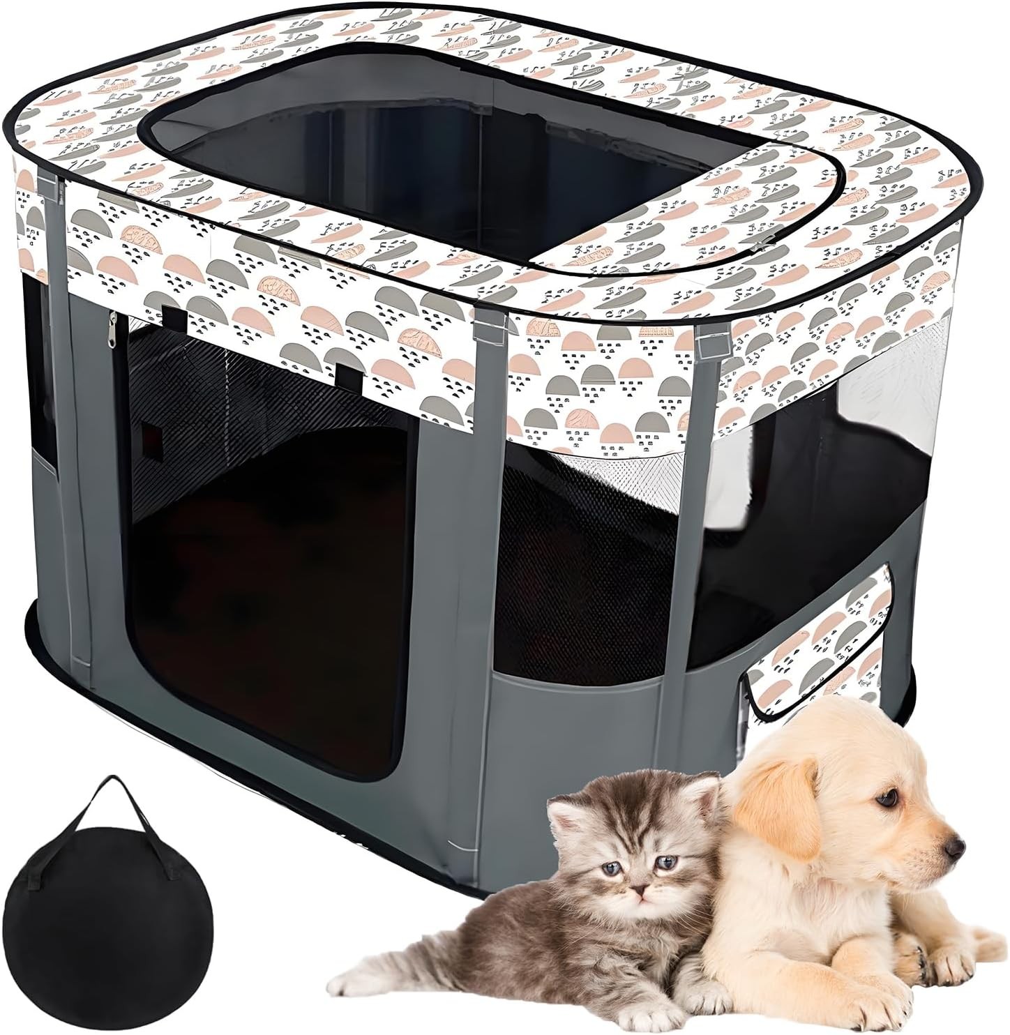 Foldable Cat Pen, 70 * 55 * 45cm Portable Pet Playpen with Storage Bag, Cat Dog