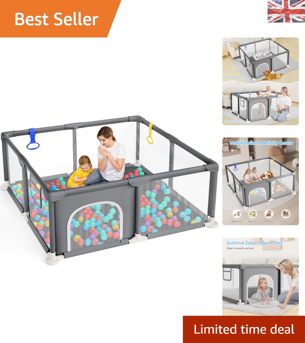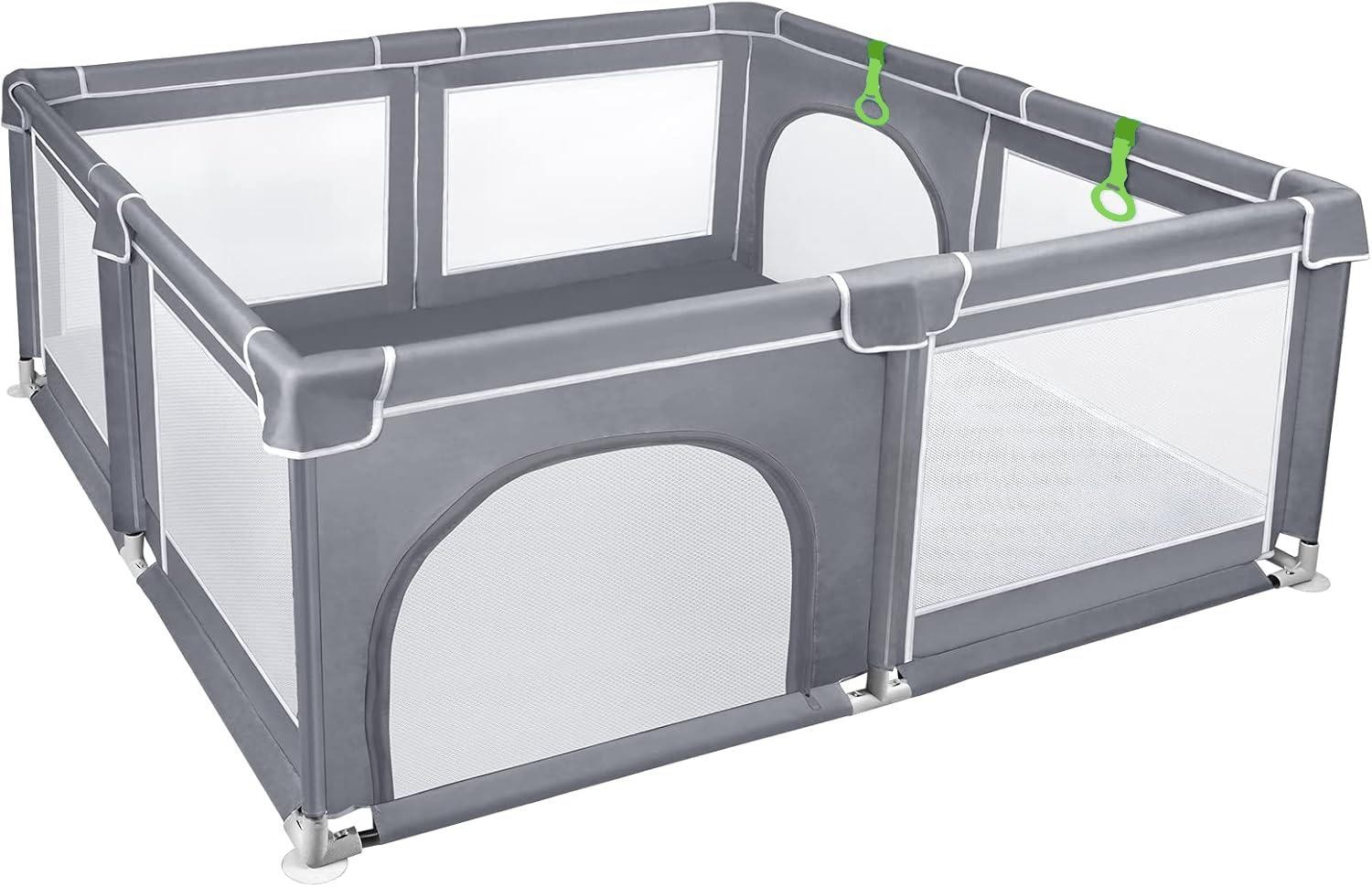 Large Baby Playpen Portable Play Yard Safety Gate Grey 150x180cm