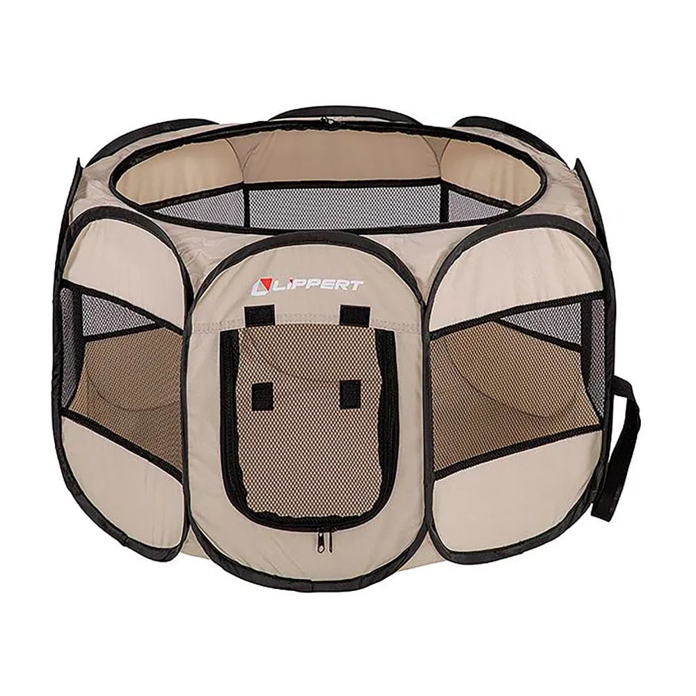 Nobleza Pet Playpen Portable Foldable Dog Cat Play Pen Indoor Outdoor Pet Fence Breathable Mesh Pet Carrier Kennel Soft Cage Tent for Puppy Rabbit Hamster Guinea Pig, Beige and Gray, 32.3x32.3x22.8in