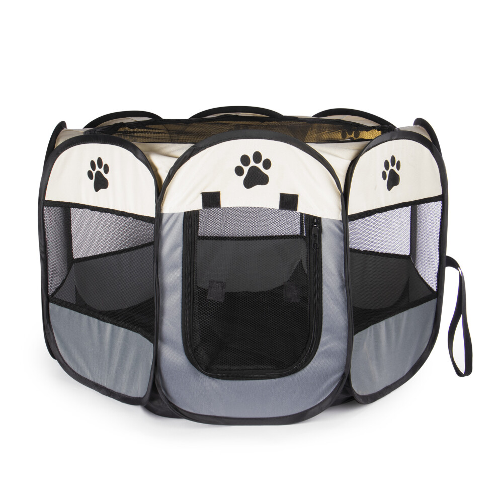 Nobleza Pet Playpen Portable Foldable Dog Cat Play Pen Indoor Outdoor Pet Fence Breathable Mesh Pet Carrier Kennel Soft Cage Tent for Puppy Rabbit Hamster Guinea Pig, Beige and Gray, 42.9x42.9x22.8in