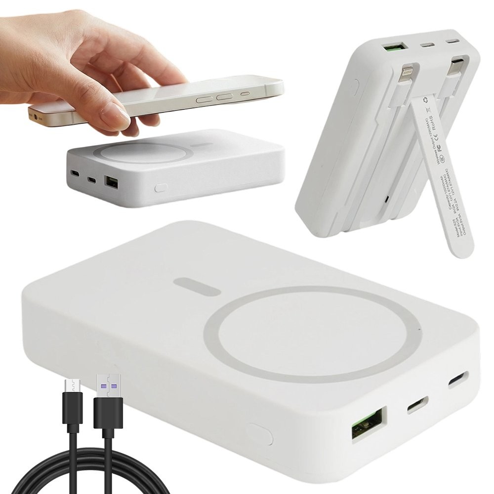 RORRY Portable Charger, 10000mAh PD 20W Fast Charging Portable Charger Power Bank with Built in Cables, Travel Battery Pack for iPhone 17/16/15/14/13/12 and Apple Watch Ultra/11/10/9/8/7/6/5, White
