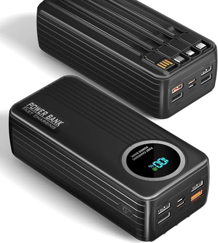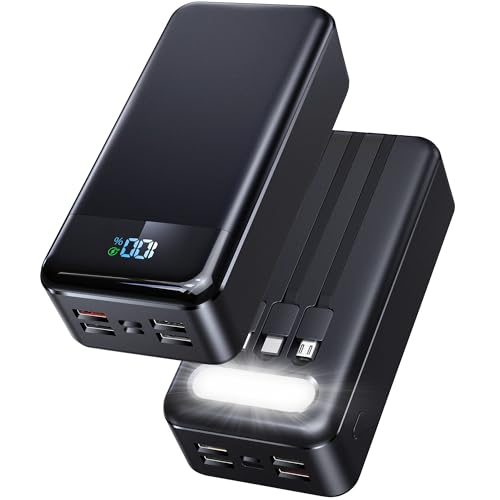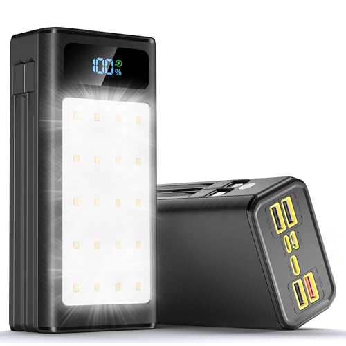 Portable Charger Power Bank 4 USB External Battery Pack LED Light High Capacity Battery Charger Built-in 3 Cable for Phones Tablets,Black,80000mAh
