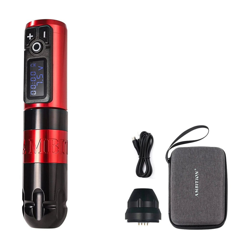 Ambition Soldier Wireless Rotary Tattoo Machine Pen with 2400mAh Portable Power Pack & LED Display for Body Art