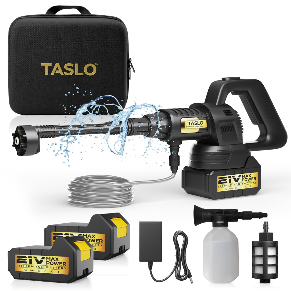 Taslo Cordless Pressure Washer - Pressure Washers - for Home, Car, Garden, Patio - 6 in 1 Adjustable Nozzle - 2 Batteries - No Hose Needed - Portable