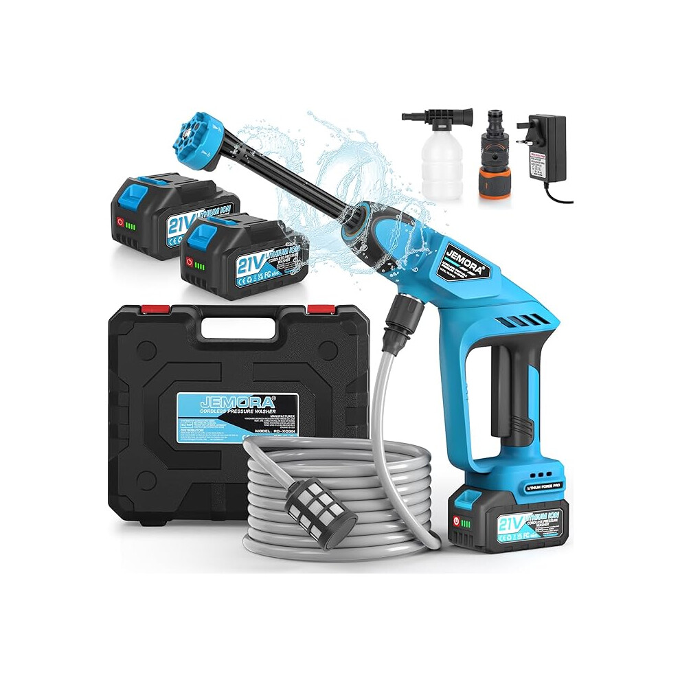 Worshow Cordless Pressure Washer, 21V 1500W Portable High Pressure Washer, 60Bar Handheld Power Washers, Jet Wash with 2 Battery, 2 Nozzle,5m Hose,