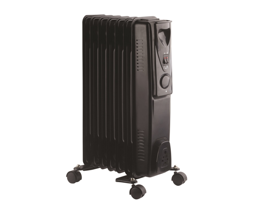 NRG 7 Fin Oil Filled Radiator Portable Electric Heater - Adjustable Thermostat-3 heat setting 1.5KW Black
