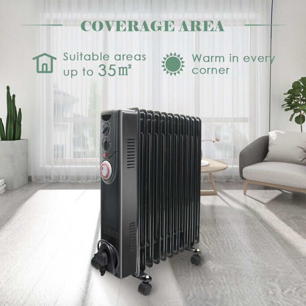 11 Fin Black Oil Filled 2500W Timer Radiator Portable Electric Heater