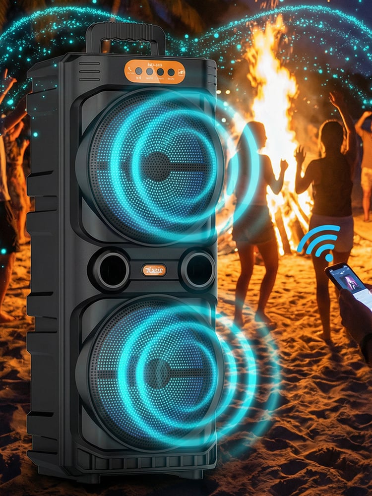16W Outdoor Portable Wireless Speaker Heavy Bass Sound Subwoofer Bass Party Speakers with Remote Control for Family Karaoke Use