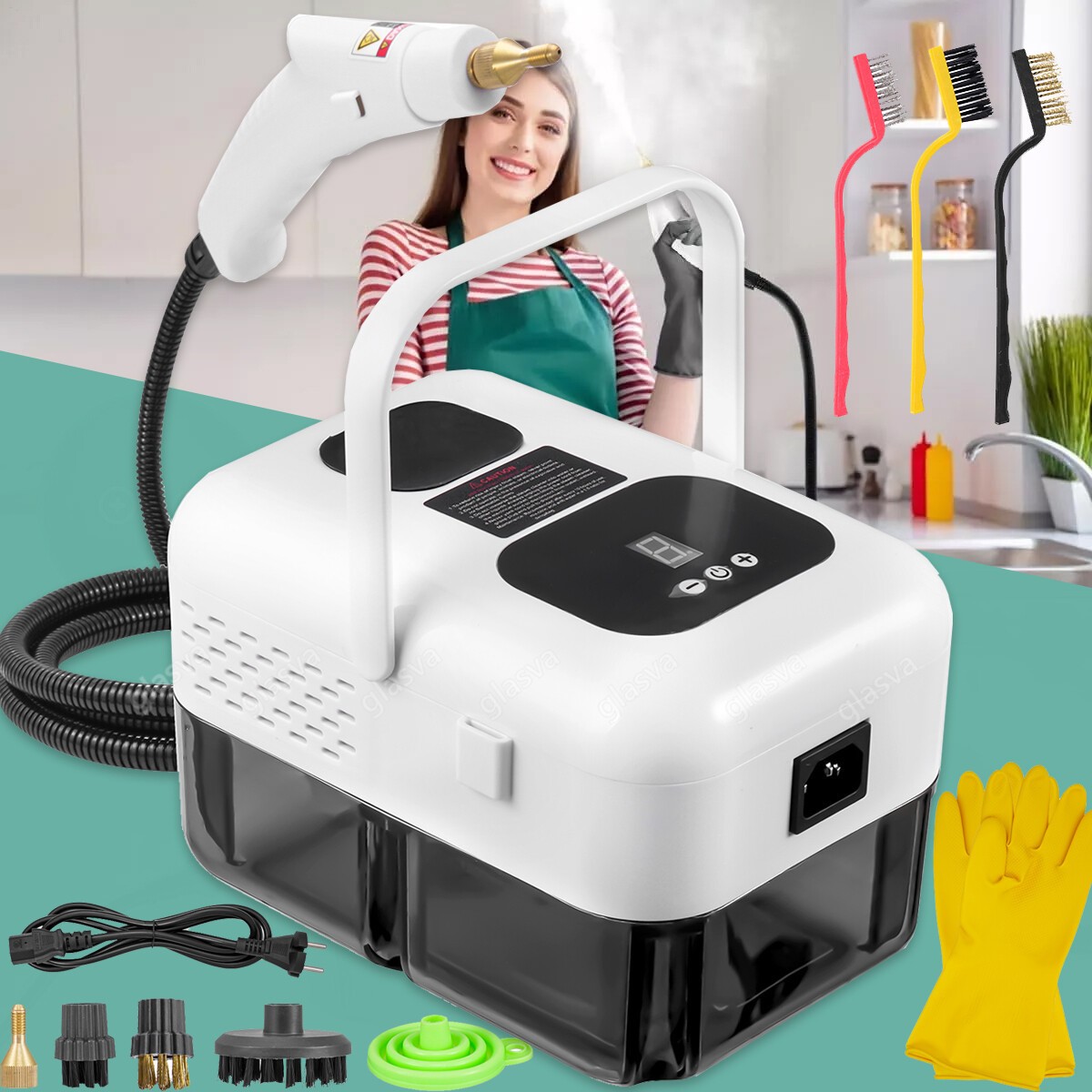 GLOIL Portable Multi-Purpose Steam Cleaner with 10 Accessories, Suitable for Carpets, Curtains, Sofas, Kitchens, Bathrooms, and More