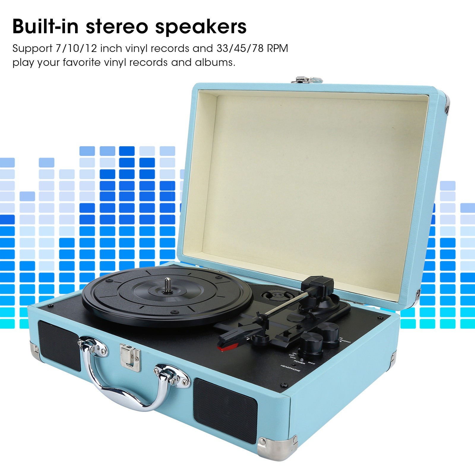 100‑240V Record Player Suitcase Portable Speaker Turntable Player 33/45/78