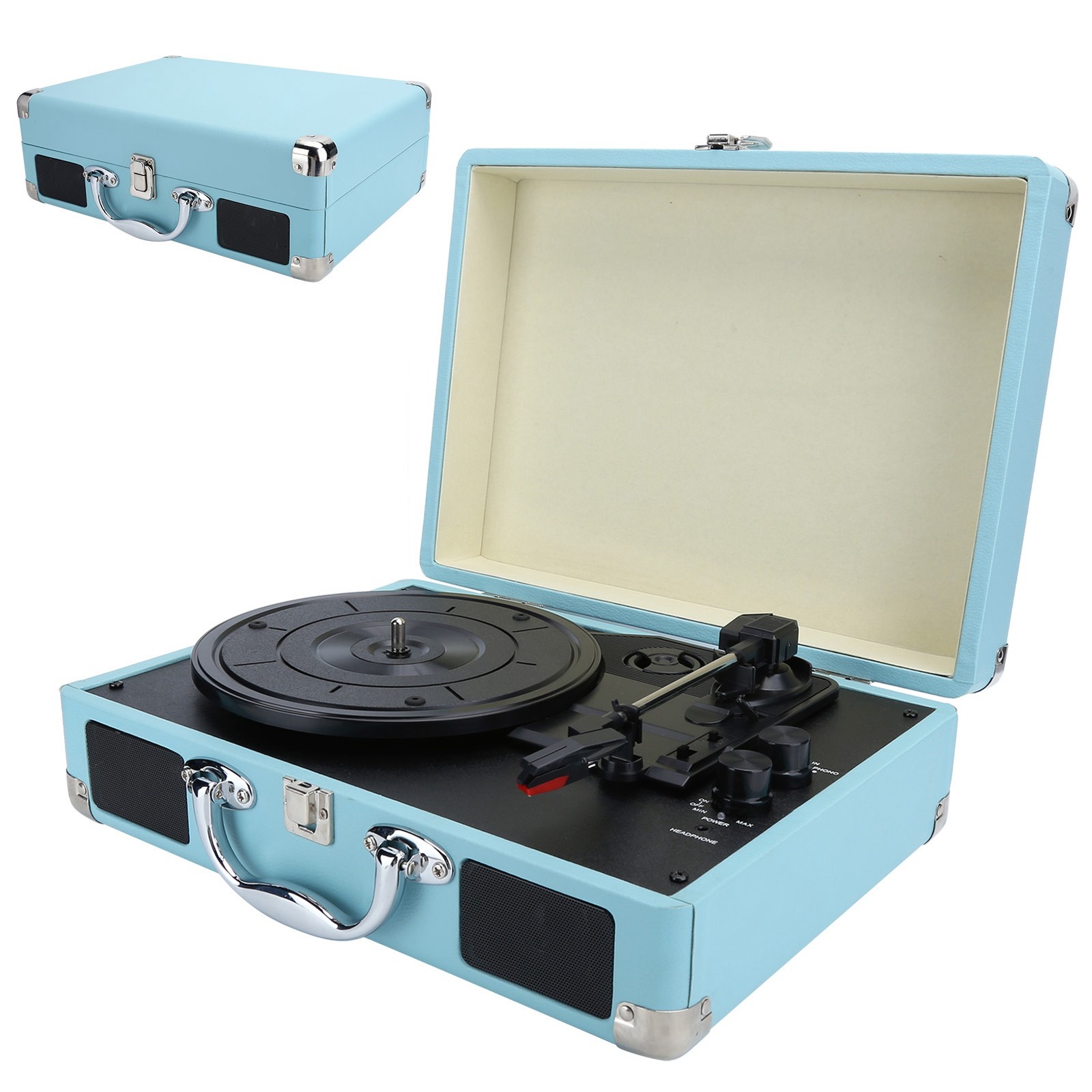 US Plug Record Player Suitcase Portable Speaker Turntable Player 33/45 NEW