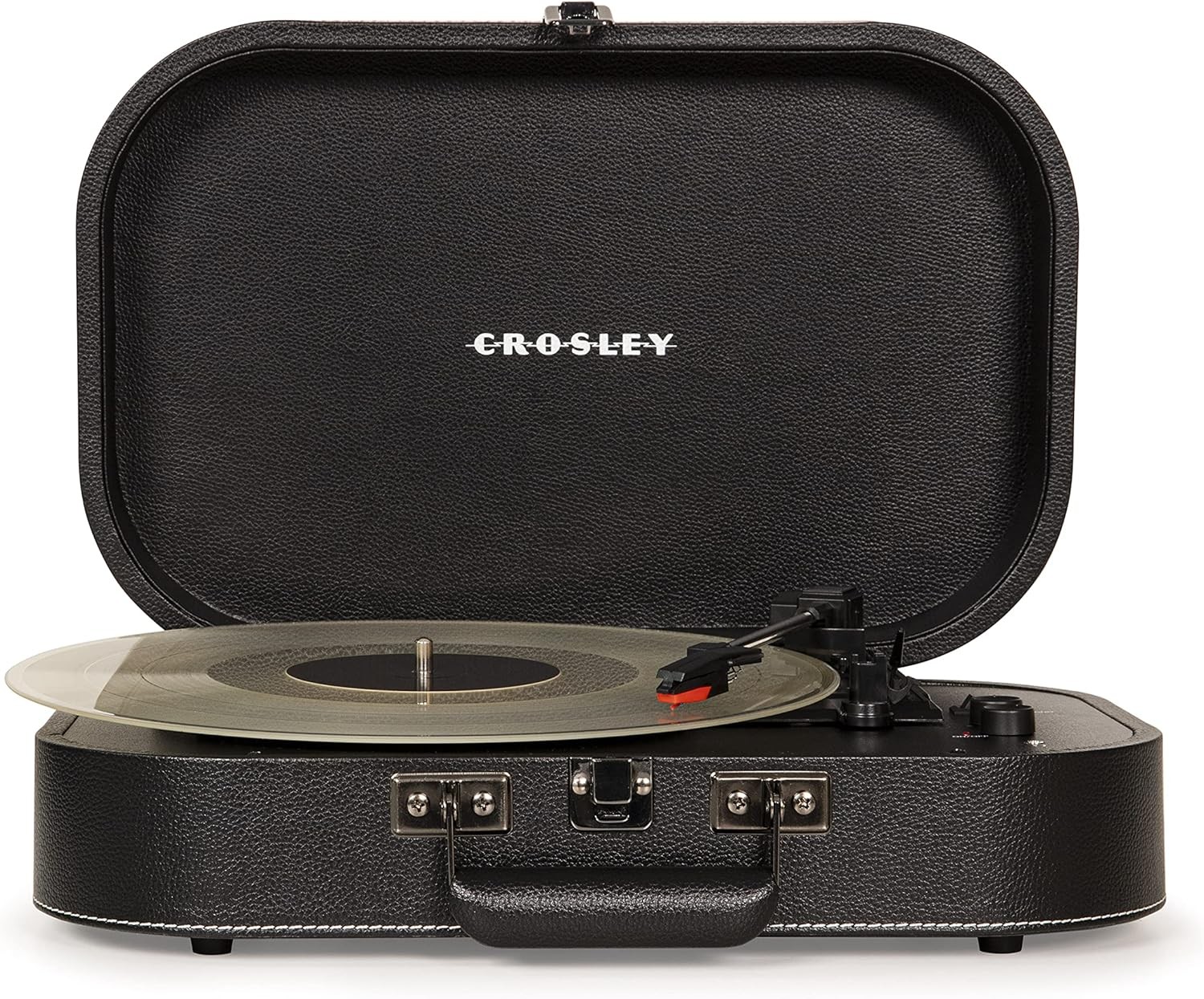 Crosley Discovery Portable Turntable - Bluetooth Record Player, 3-Speed Suitcase Vinyl Player, Home Turntables for Vinyl Records, Built in Stereo Speakers & Bluetooth Receiver, AUX Input, Black
