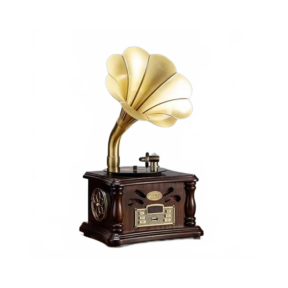 Vintage Wooden Phonograph Turntable with Bluetooth Speaker & Horn - Portable Antique Vinyl Record Player