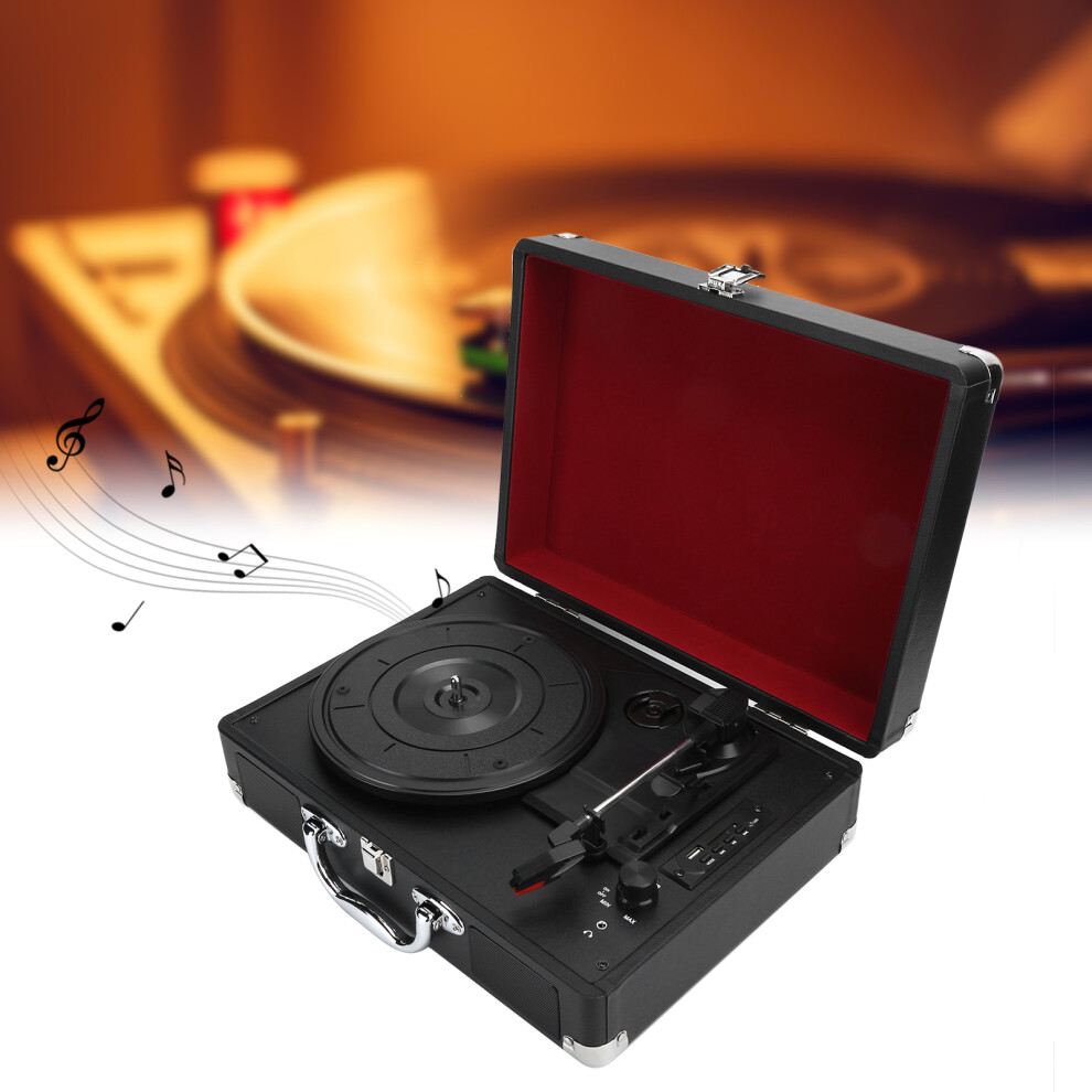 100â240V Portable Vinyl Record Player Suitcase with Bluetooth, 33/45/78 RPM